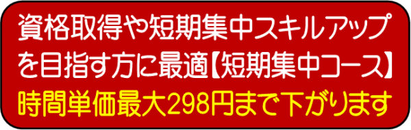 短期集中ご利用で、授業料が1時間最大298円まで下がります(=^・^=)