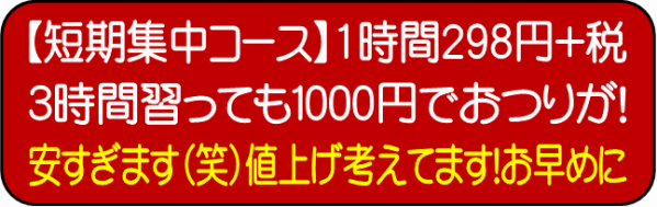 短期集中ご利用で、授業料が1時間最大298円まで下がります(=^・^=)