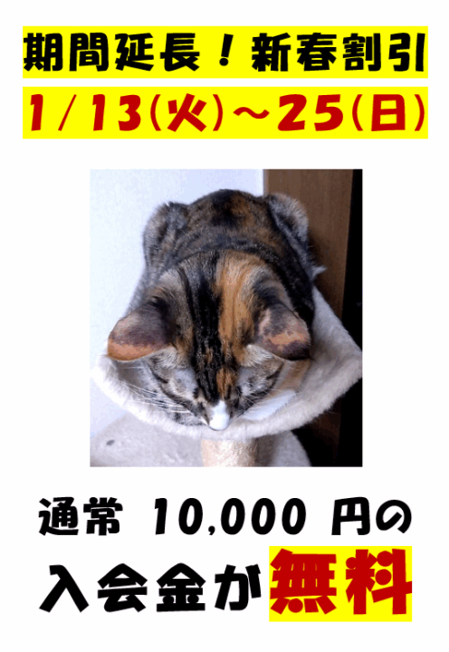 今なら!通常10,000円の入会金が、無料に\(^o^)/、期限があるのでお急ぎください!
